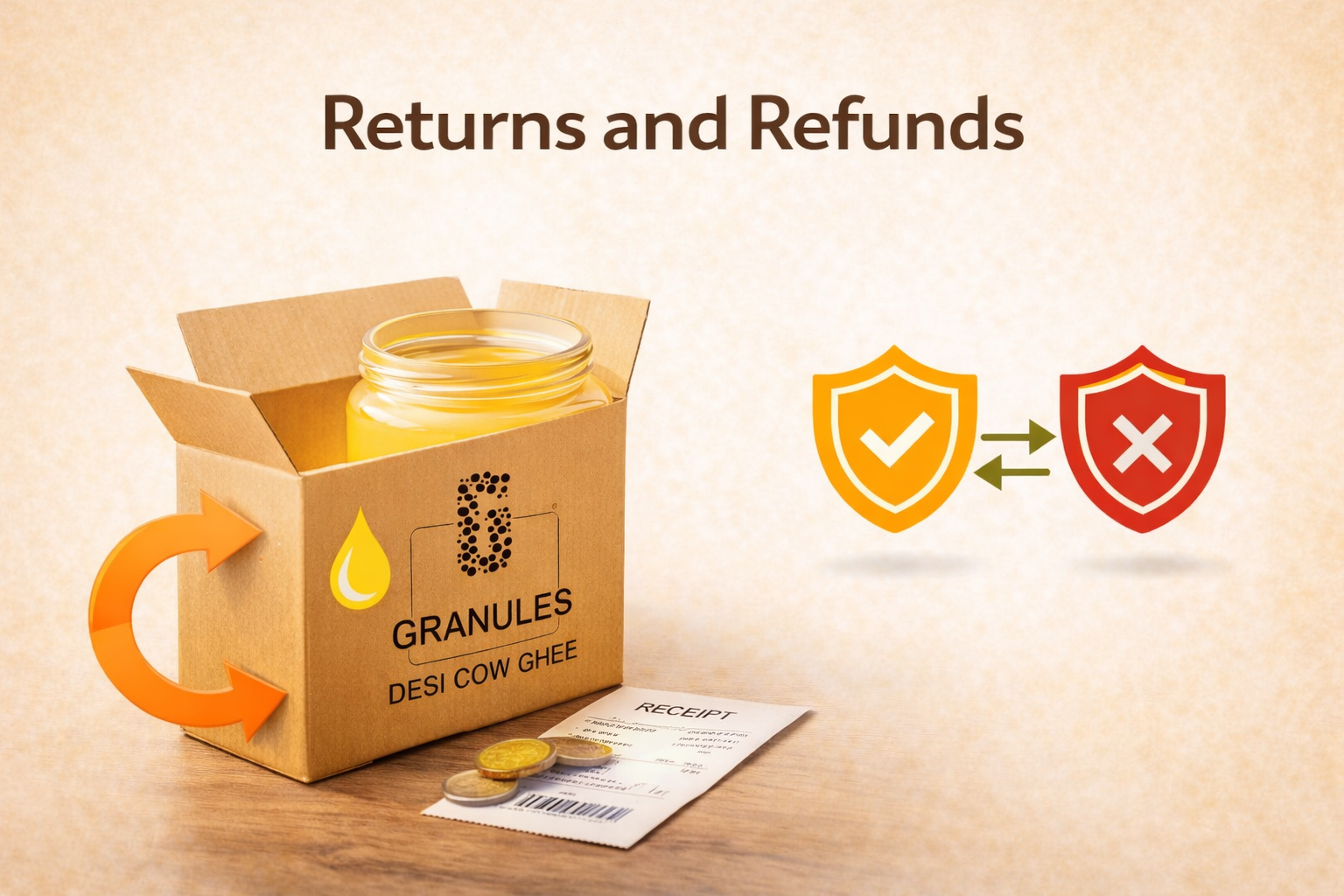 Contact our customer support team at info@thegranules.com or call +91-7845182756 with your order details and a clear photo of the product showing the issue.